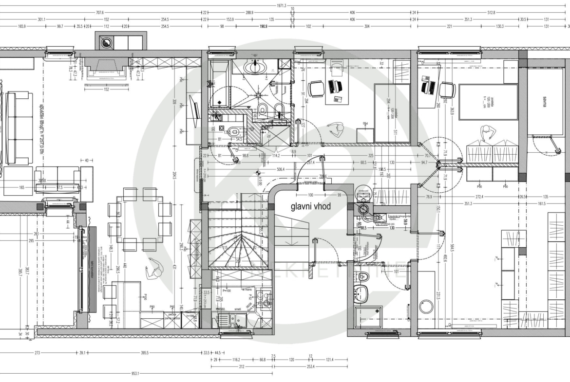 Donje etaže koja se sastoji od prostrane kupaonice, dvije velike spavaće sobe sa walk-in ormarima i izlazima na terasu i vrt sa maksimalnom privatnošću.