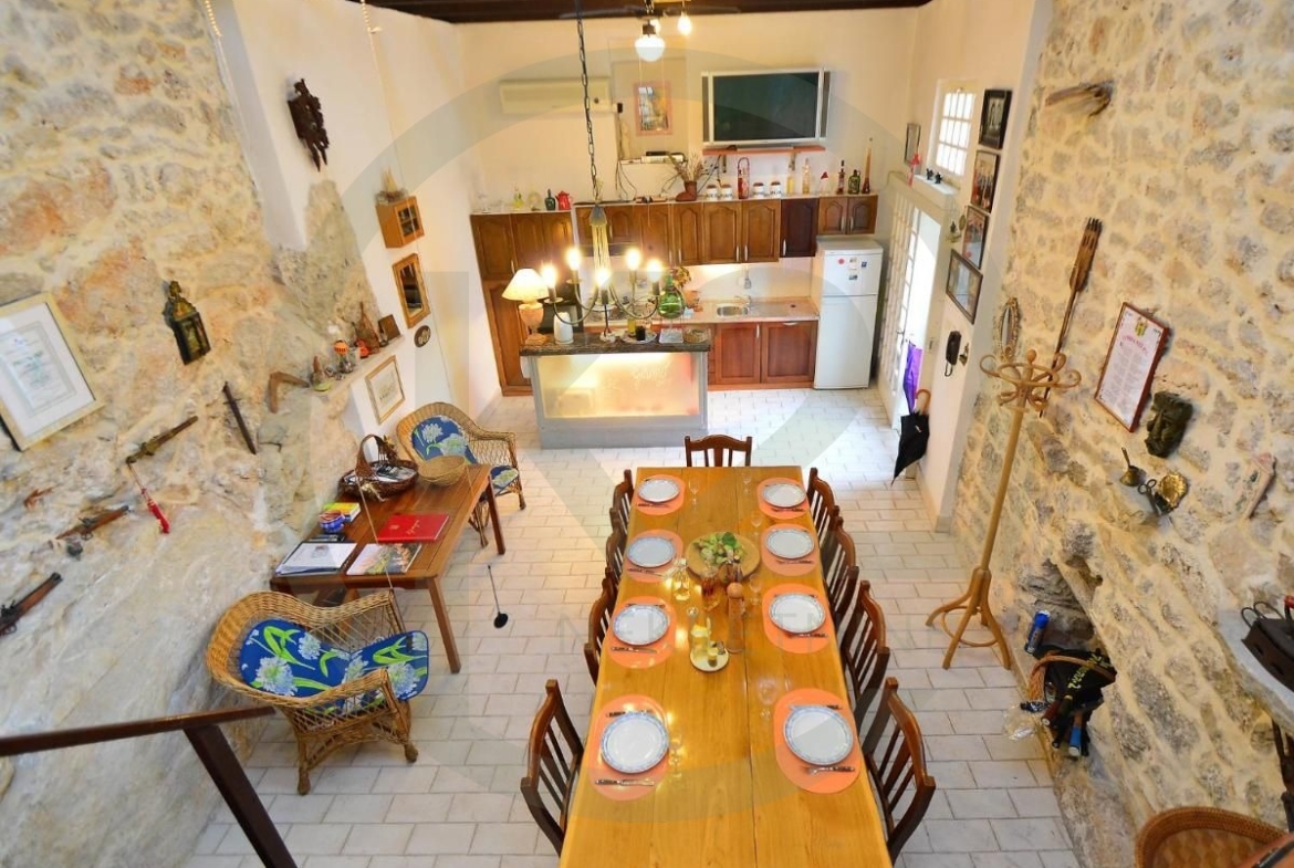 Kuće su izvedene i podijeljene u dva zasebna objekta te se u jednom nalaze tri spavaće sobe i dvije kupaonice, dok se u drugom objektu nalazi prostrana kuhinja i blagovaonica za smještaj 12 osoba.