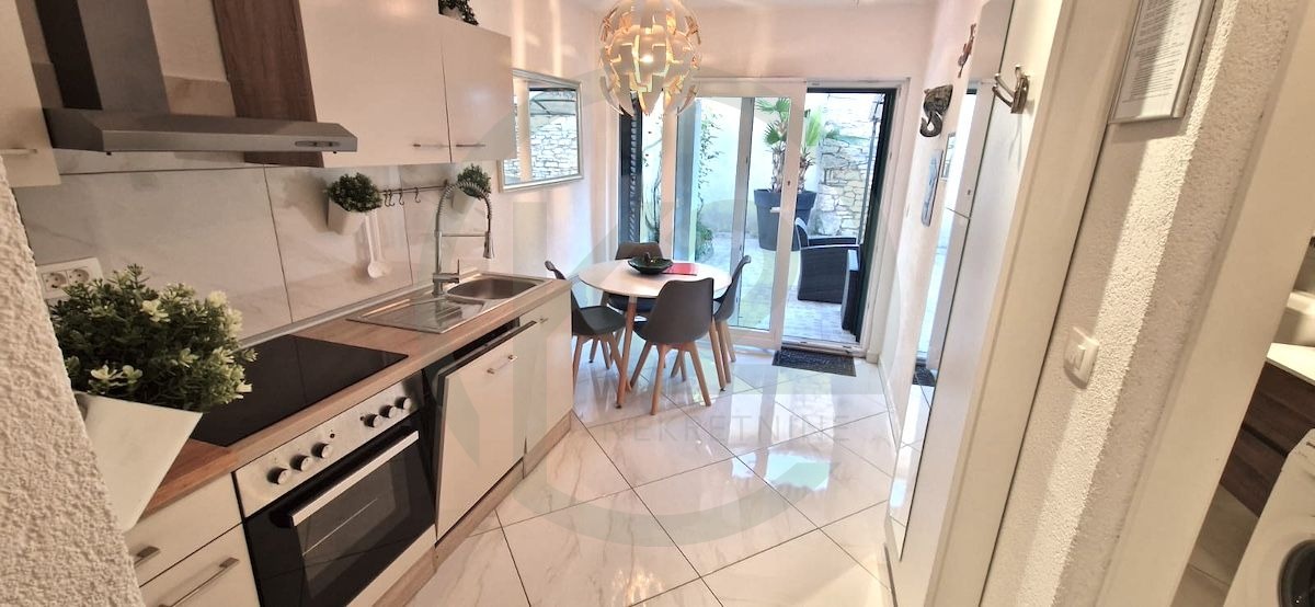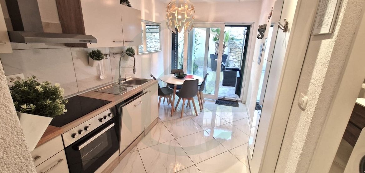 U srcu Šišana nalazi se lijepo renovirana kamena kuća koja nudi 120 m² stambene površine i privatni vrt koji osigurava potpunu privatnost. Kuća se prostire na dvije etaže. U prizemlju se nalazi prostrani dnevni boravak s kamenim zidovima i peći na drva koja stvara ugodan ambijent. Tu je i velika, dobro opremljena kupaonica s perilicom i sušilicom rublja te kvalitetna kuhinja s blagovaonicom koja izlazi na lijepo dvorište od 50 m². Ovaj vanjski prostor uključuje jacuzzi, vanjski kamin, prostor za sjedenje za opuštanje i ostavu sa saunom i opremom za održavanje.