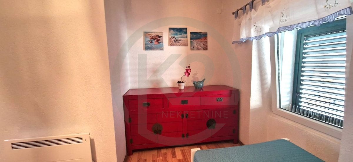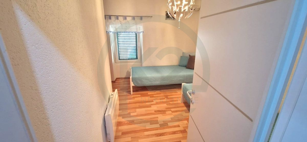Na katu se nalaze dvije velike spavaće sobe, svaka s klima uređajem i izlazom na terasu. Također postoji mogućnost dodavanja još jednog kata, čime se širi životni prostor ove šarmantne kamene kuće. Nekretnina je pažljivo projektirana, kombinirajući moderan stil s tradicionalnim istarskim elementima. Stražnje dvorište, veličine nešto manje od 30 m², dodatno prikazuje ovu mješavinu. Kuća ima PVC stolariju s aluminijskim griljama, novoizgrađene podove, te sve nove klima, električne i vodovodne sustave. Prodaje se kompletno namještena te je useljiva za novog vlasnika.