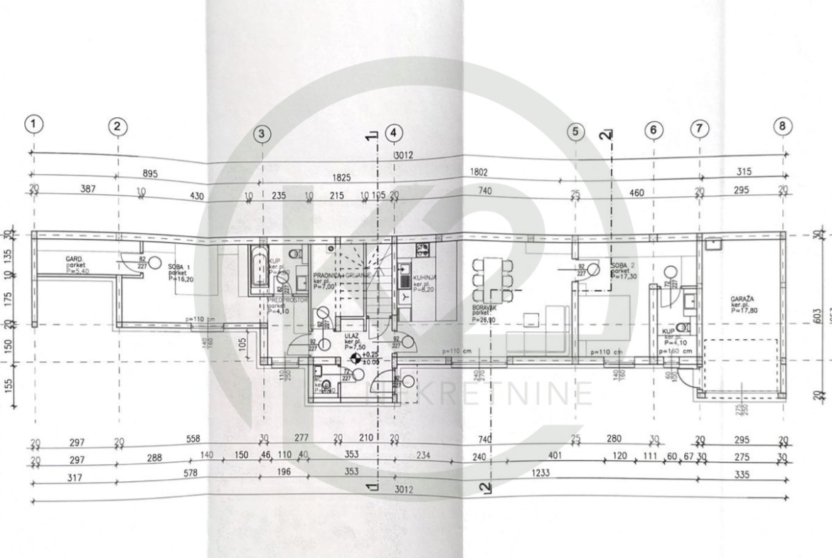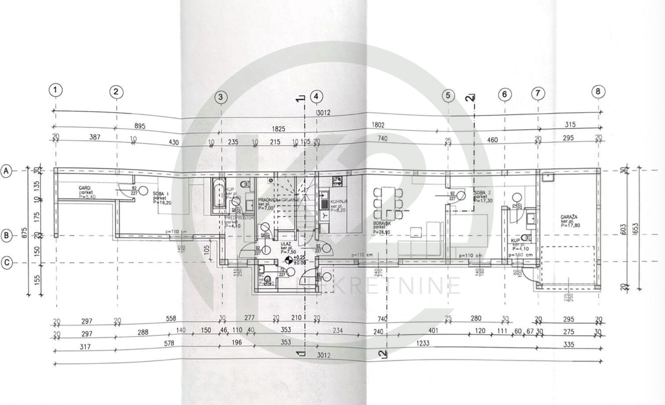 Uz kuću je smještena i garaža površine 17,80 m2.