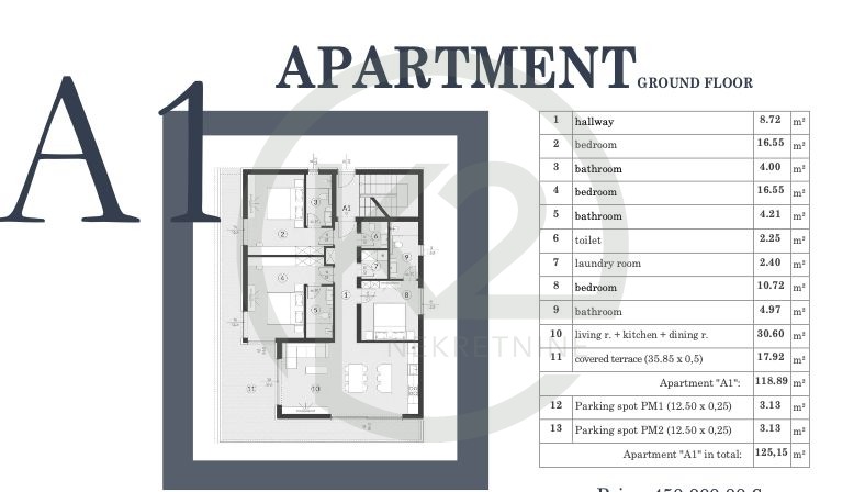 – Ukupna površina: 125 m²