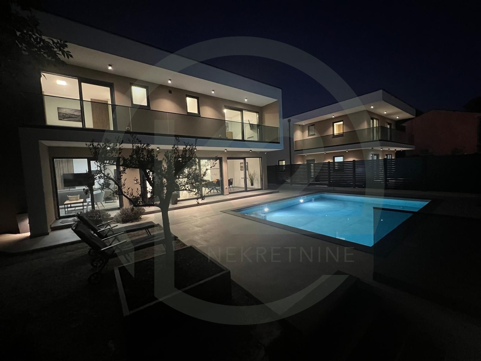 Eksterijer krasi veliki bazen okružen uređenom okućnicom, idealan za uživanje u toplim ljetnim danima. Vila spaja vrhunski dizajn, suvremene tehnologije i prestižnu lokaciju, pružajući neponovljiv osjećaj luksuza i mira.
