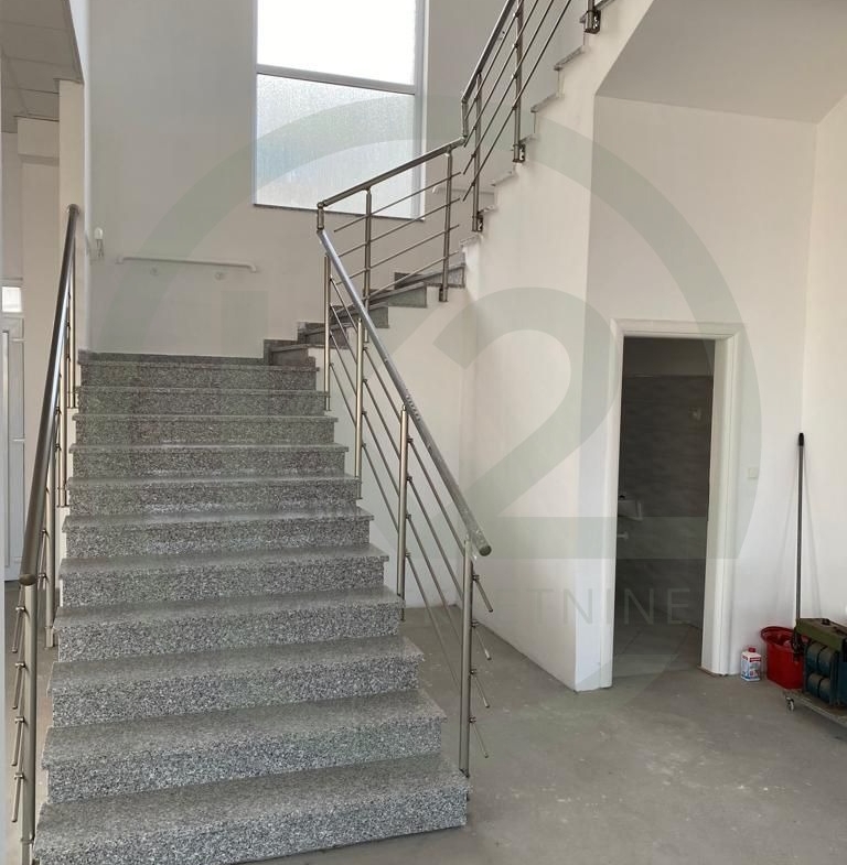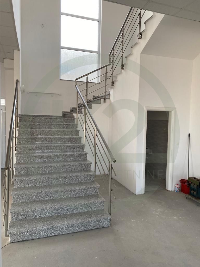 Poslovna zgrada je dugačka 56 m i široka 18 m (visina 7,5 m). Prednji dio hale u prizemlju ima 300 m2 i još 300 m2 na katu.