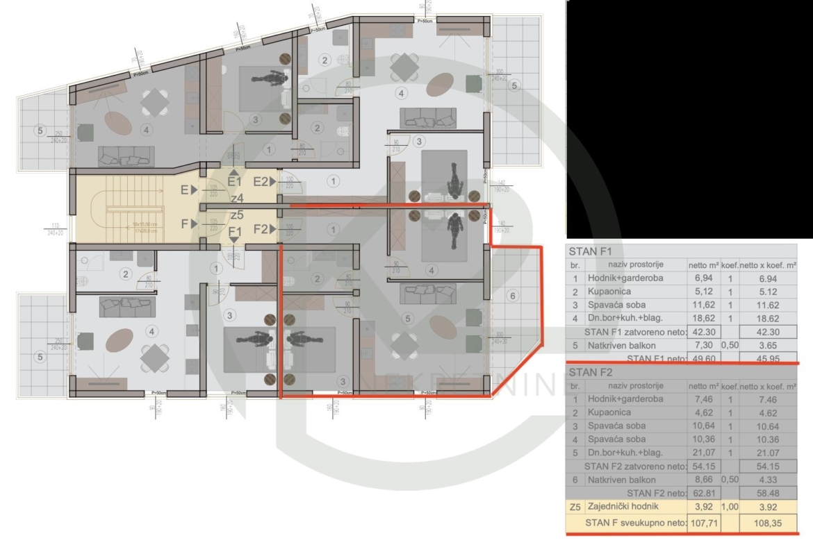 Detalji apartmana F2 – 2 kat
