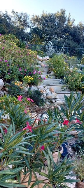 Dvoriste je terasasto sa prekrasnom hortikulturom, solarnom rasvjetom i mirisnim vrtom koje pruža ugođaj intime.