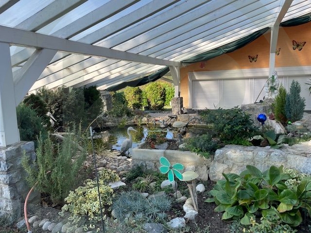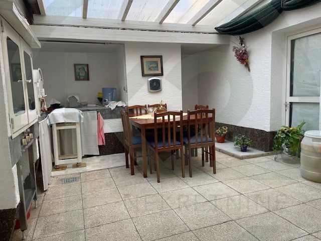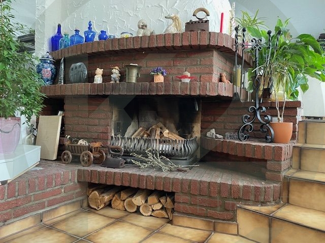 U prizemlju se nalazi ulaz, predprostor, hodnik, desno kuhinja+blagovaona, u produžetku vanjska natkrivena blagovaona sa roštiljem, pekom i ražnjem, lijevo dnevni boravak+zasebni prostor sa kaminom, natkrivena vanjska terasa sa bazenom za ribe.