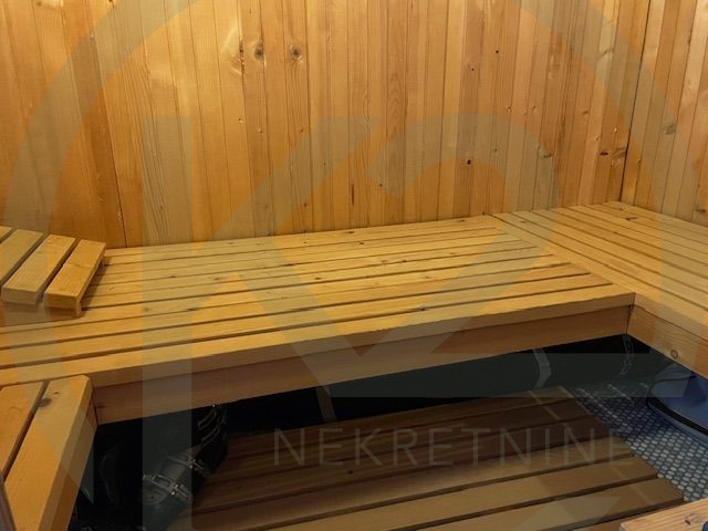 U prizemlju se nalazi i unutarnji veliki bazen, sauna i WC.