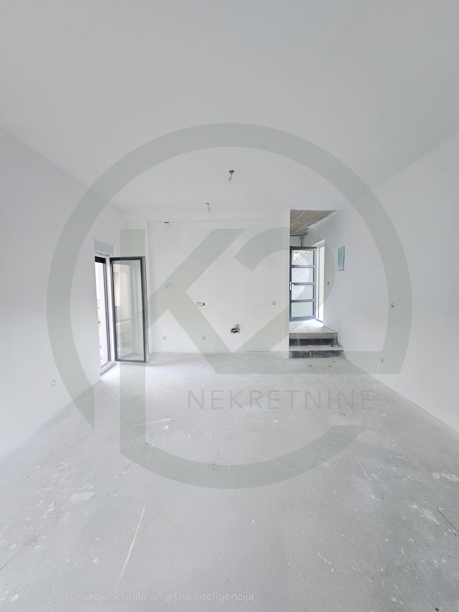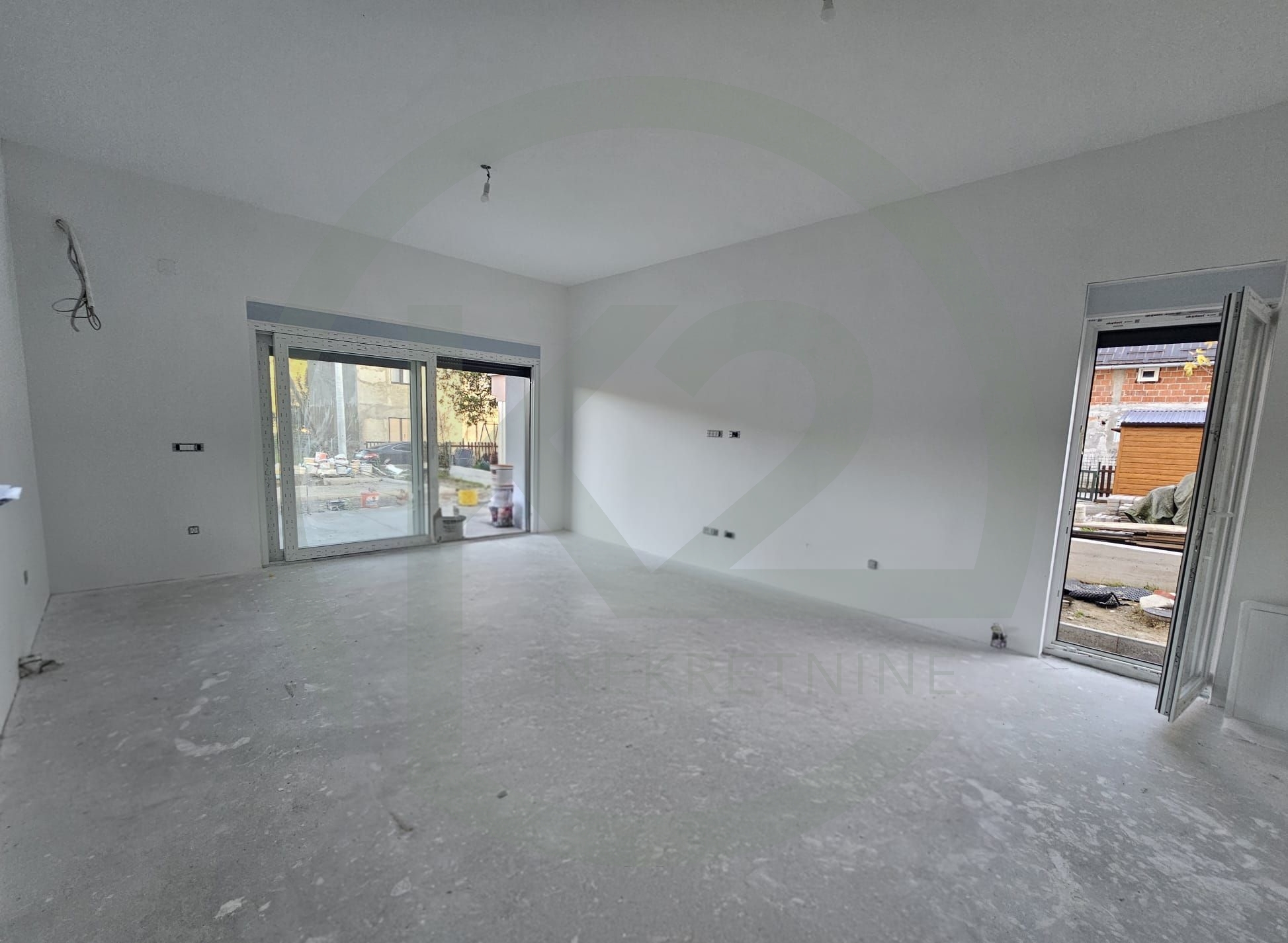 Vanjska PVC stolarija sa troslojnim IZo staklima, eslinger električnim roletama i komarnicima, velika staklena klizna stijena na izlazu na terasu i vrt.
