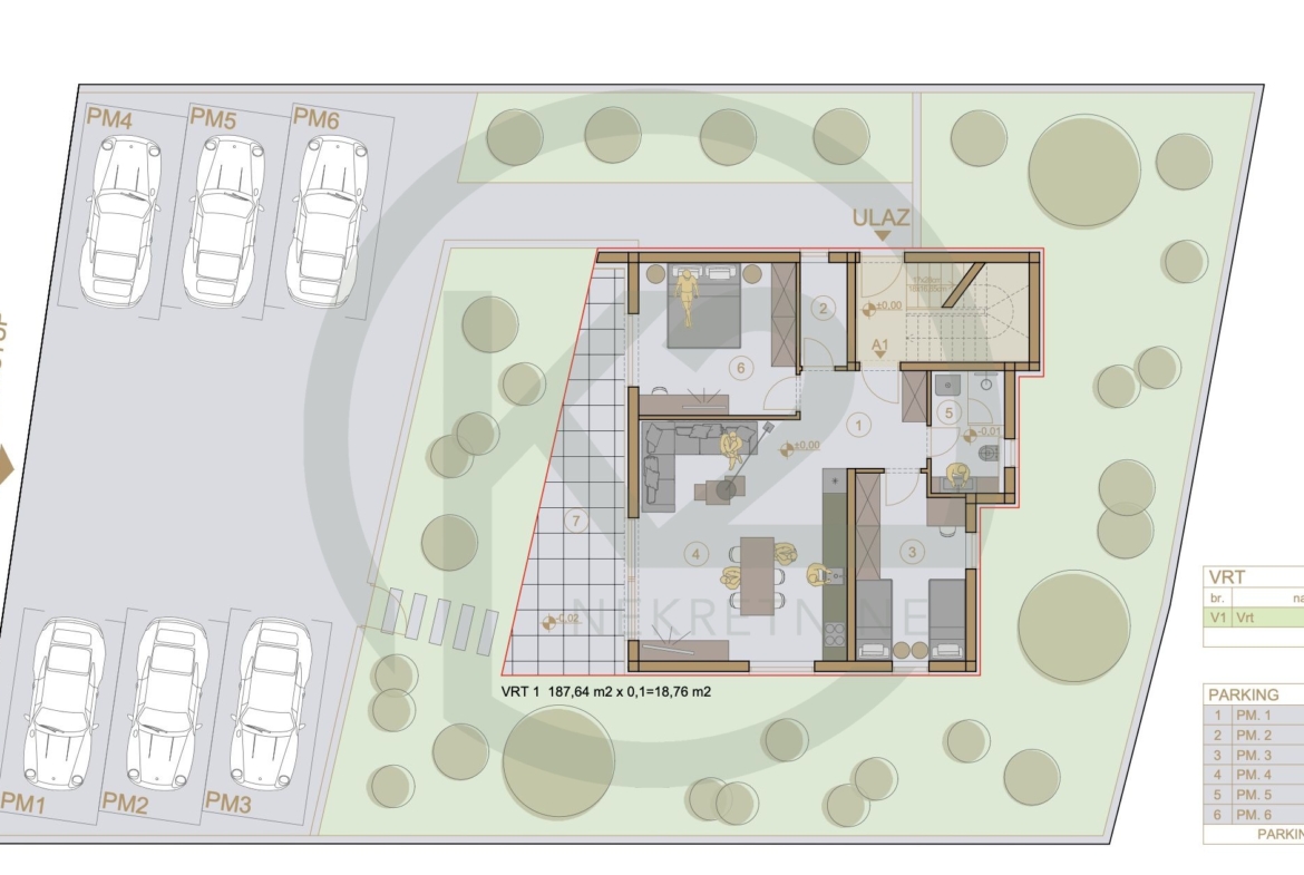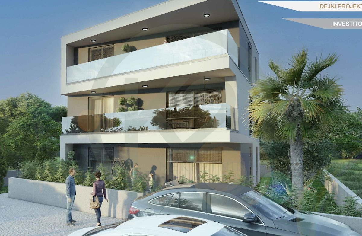 Stan smješten u mirnom, zelenom okruženju samo 1000 metara od mora iu blizini svih važnih sadržaja, sa zadovoljstvom Vam nudimo stan u prizemlju novoizgrađene zgrade sa samo tri stambene jedinice.