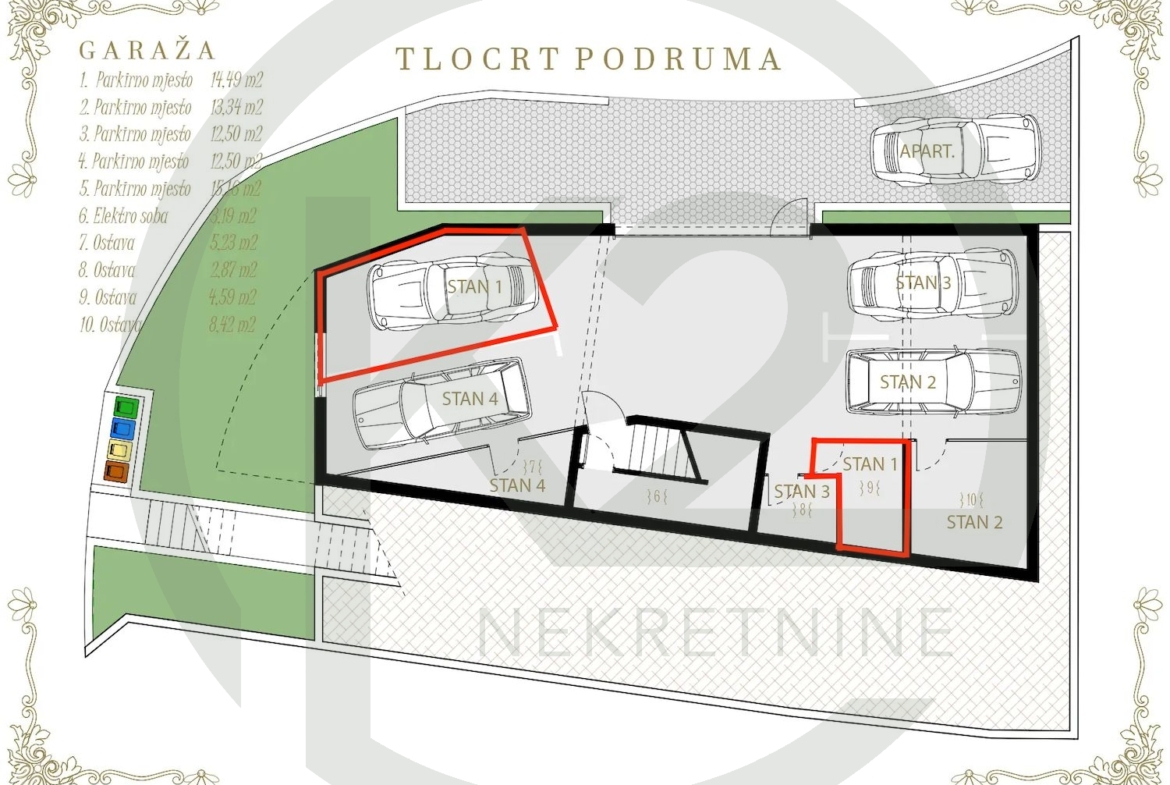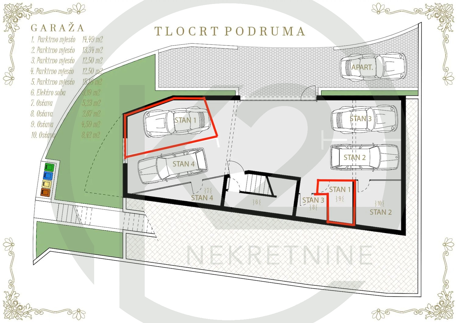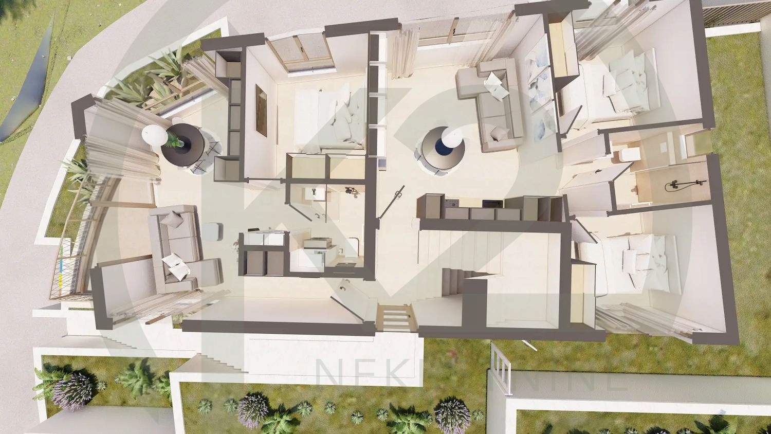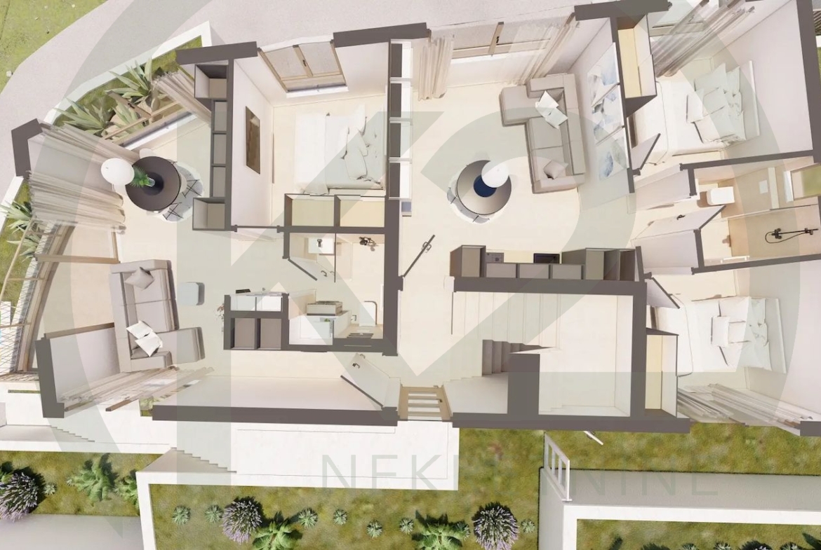 Projekt je zamišljen kao nepravilni pravokutnik s ravnim, prohodnim krovom i osmišljen za sve koji traže spoj kvalitetne gradnje, funkcionalnog rasporeda i mediteranskog načina života s panoramskim pogledom na more i grad.