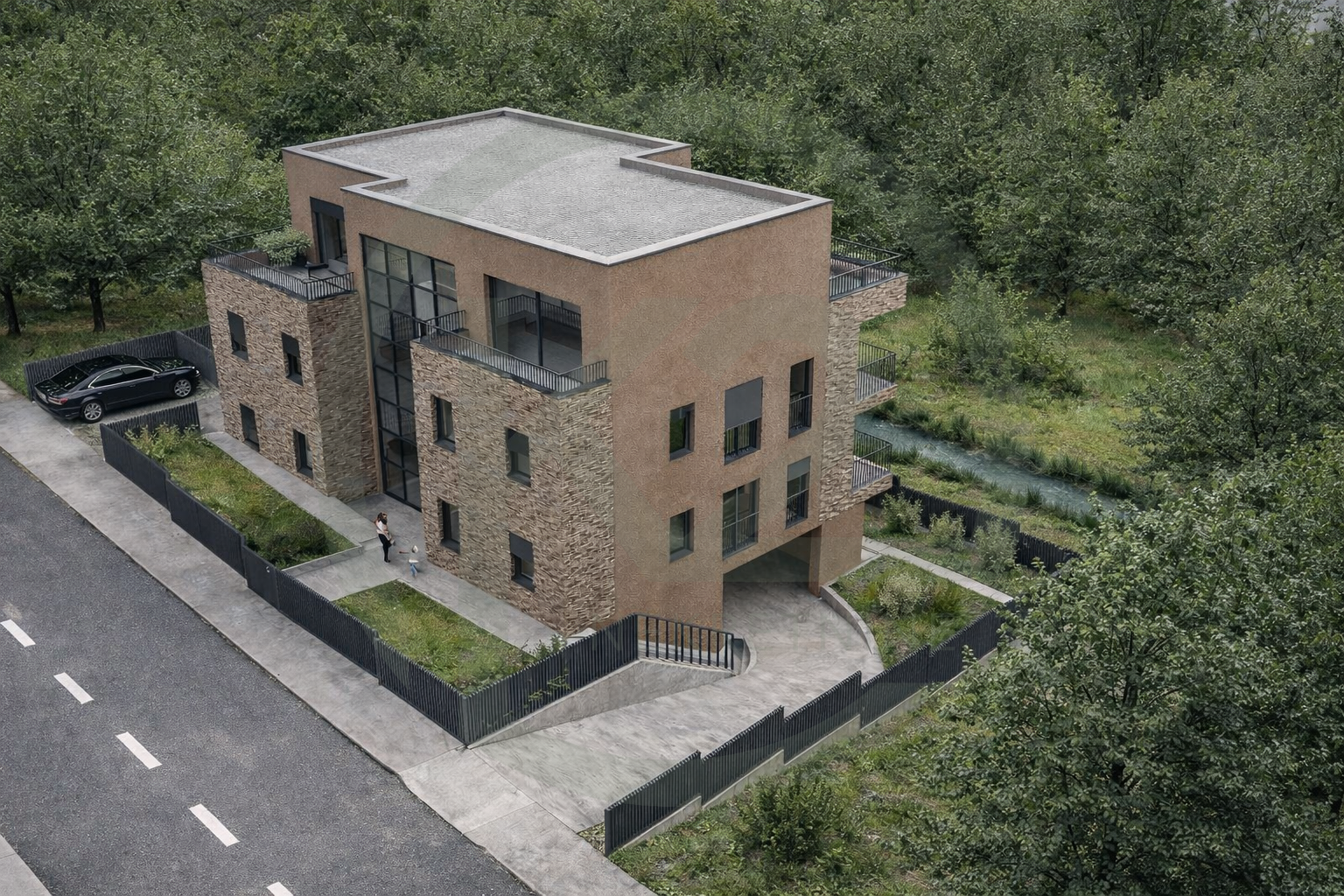 Zgrada će biti razvijena u četiri etaže od čega se u podrumu nalaze parkirna mjesta, u visokom prizemlju dva stana, na prvom katu također sva stana te veliki penthouse na drugom katu.