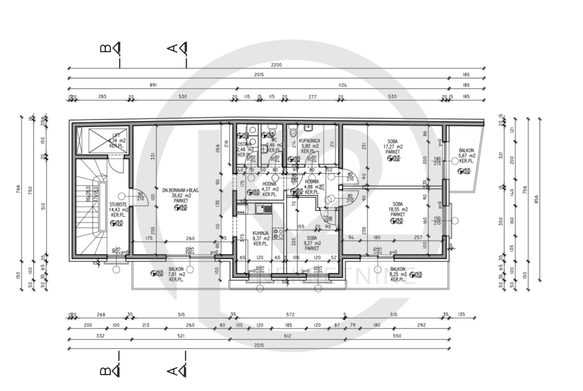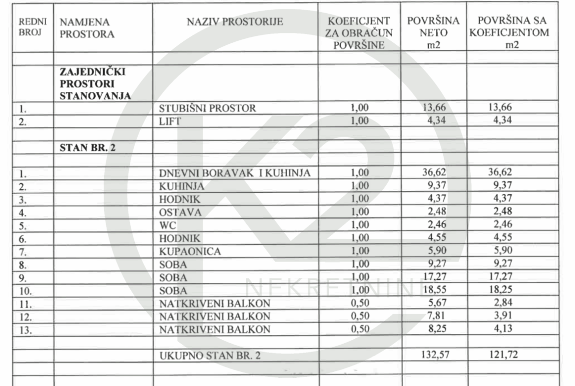 Stan na drugom katu ukupne površine 134,22 m2 sastoji se od: