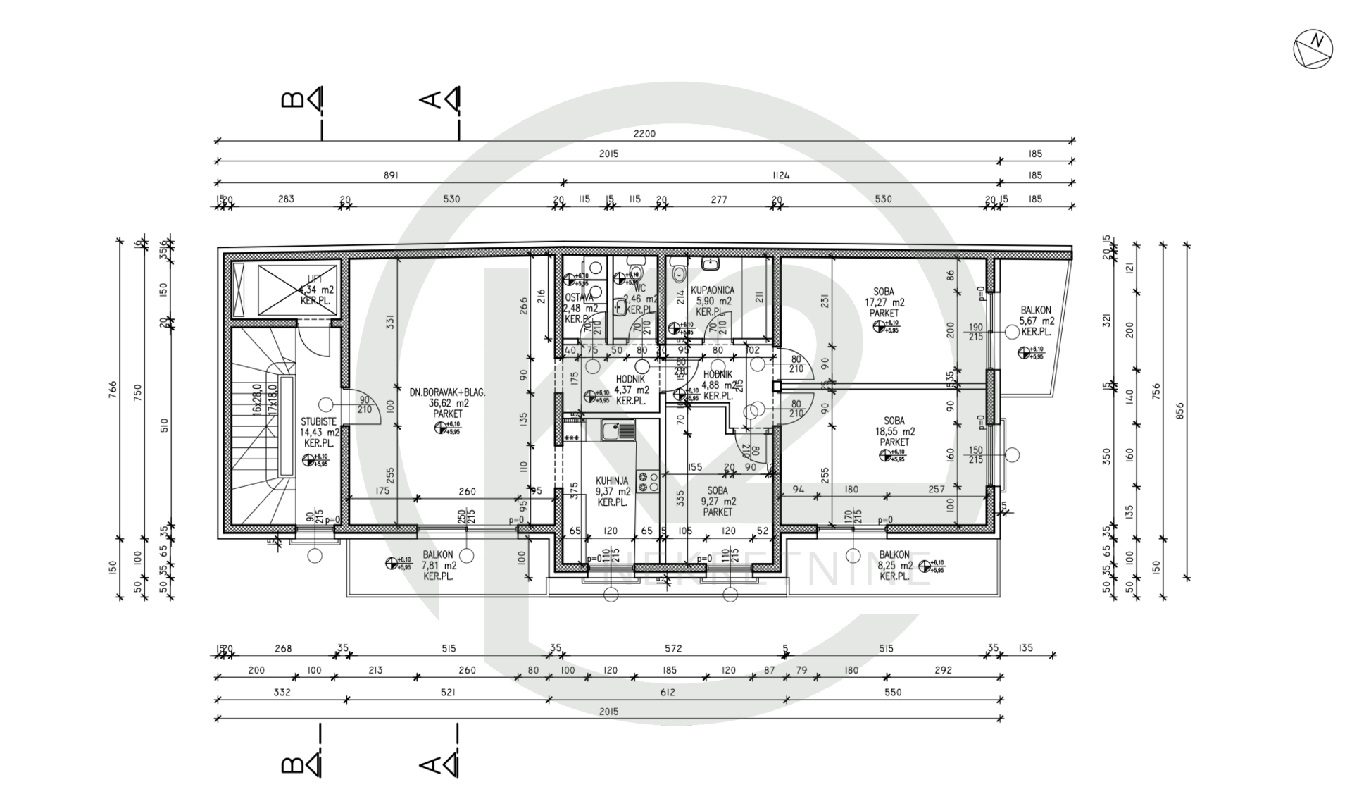 Na svakoj etaži nalazi po jedan stan, sa stubištem i direktnim dizalom.