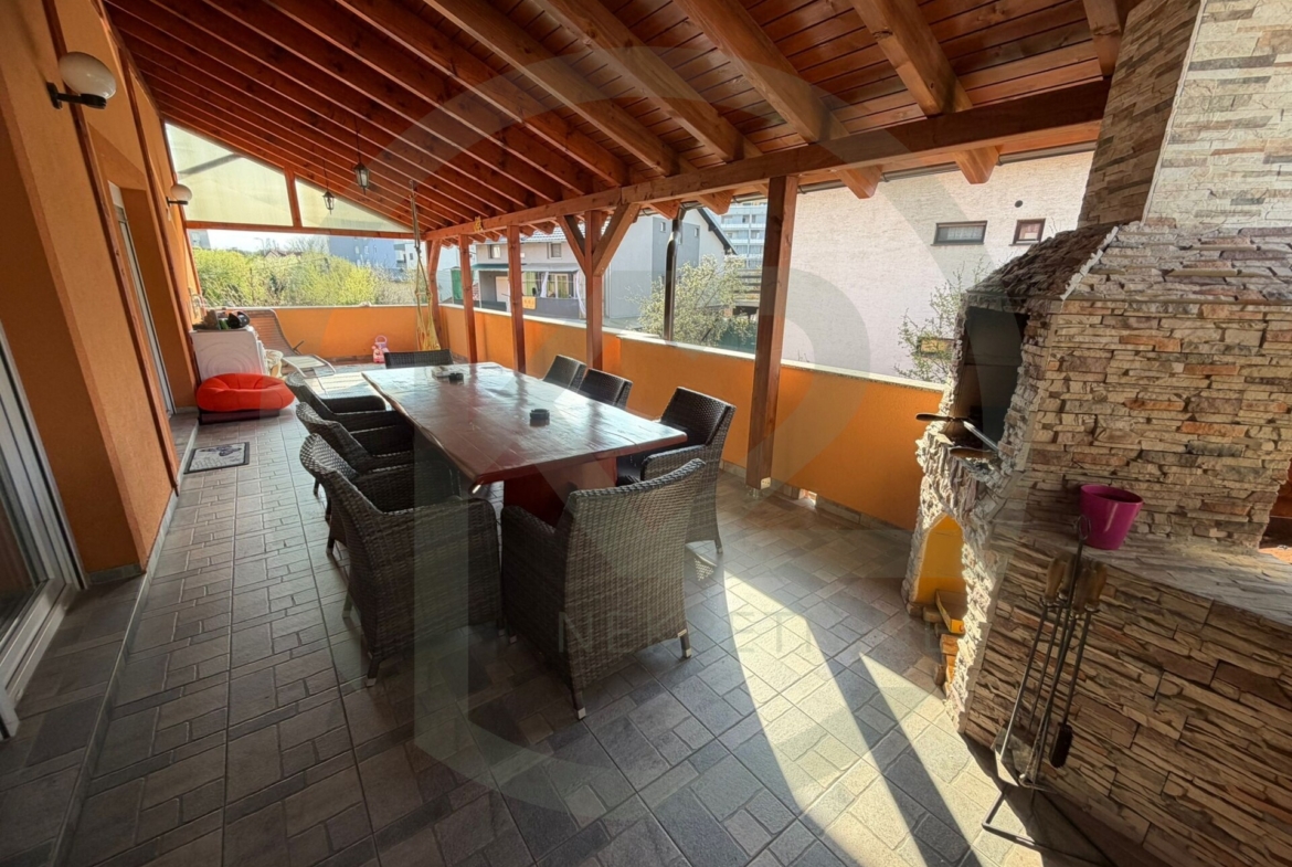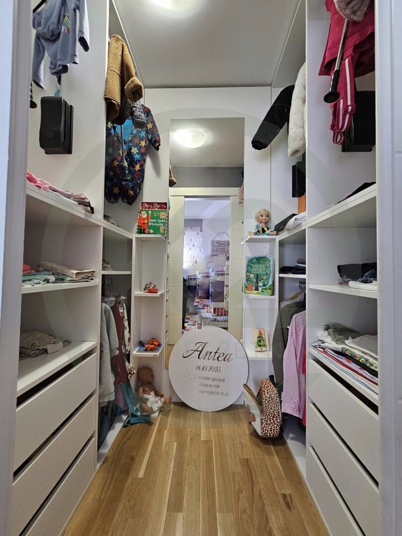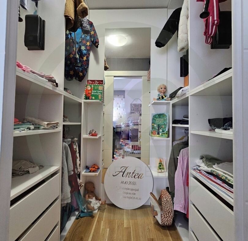 Stan se sastoji od ulaznog hodnika, prostranog dnevnog boravka sa kuhinjom i blagovaonicom te izlazom na veliku natkrivenu terasu površine 36 m2 na kojoj se nalazi stol za 8 osoba te zidani kamin, veće spavaće sobe sa walk-in garderobom te izlaznom na balkon, manje spavaće sobe koja također ima izlaz na balkon i kupaonice sa WC-om.
